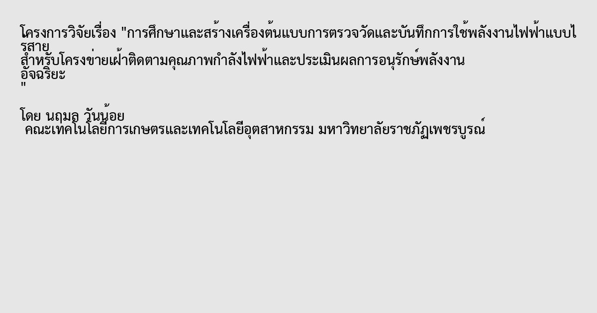 การศึกษาและสร้างเครื่องต้นแบบการตรวจวัดและบันทึกการใช้พลังงานไฟฟ้าแบบไร้สาย สำหรับโครงข่ายเฝ้าติดตามคุณภาพกำลังไฟฟ้าและประเมินผลการอนุรักษ์พลังงานอัจฉริยะ