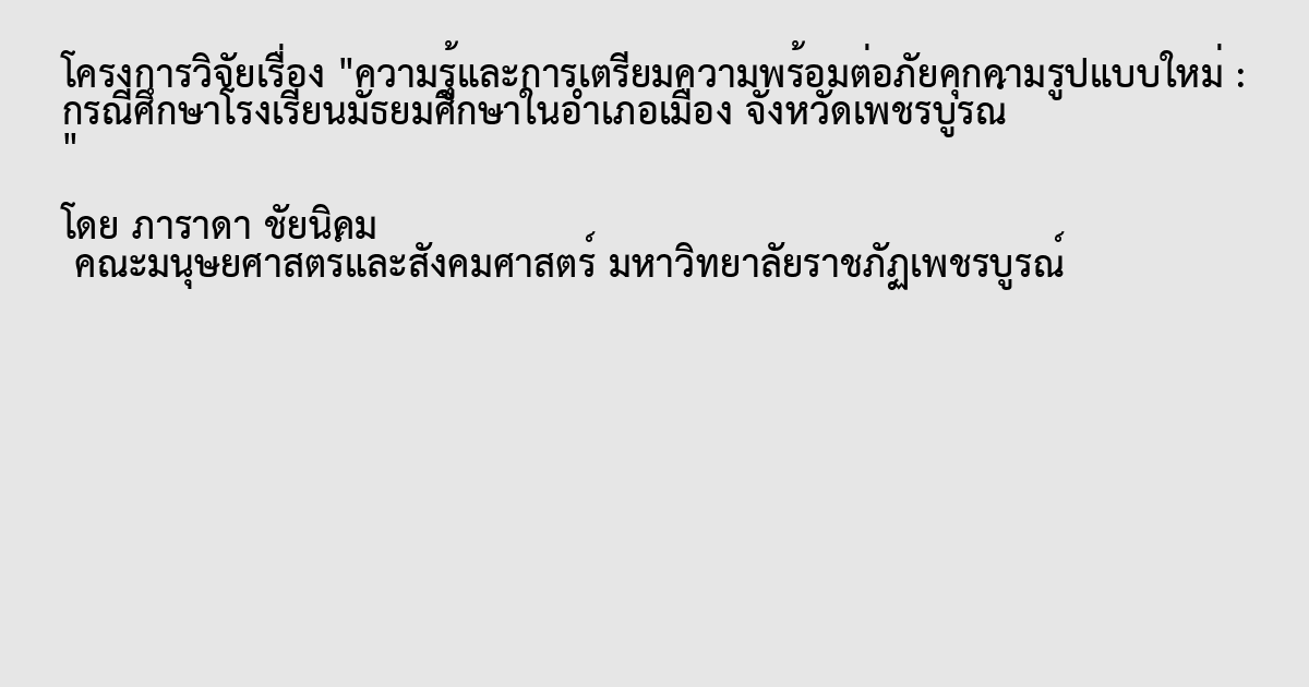 ความรู้และการเตรียมความพร้อมต่อภัยคุกคามรูปแบบใหม่ : กรณีศึกษาโรงเรียนมัธยมศึกษาในอำเภอเมือง จังหวัดเพชรบูรณ์