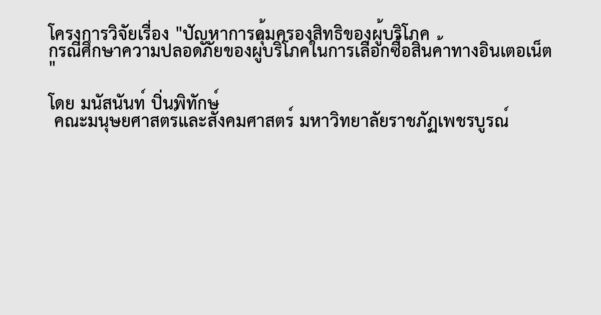 ปัญหาการคุ้มครองสิทธิของผู้บริโภค กรณีศึกษาความปลอดภัยของผู้บริโภคในการเลือกซื้อสินค้าทางอินเตอเน็ต