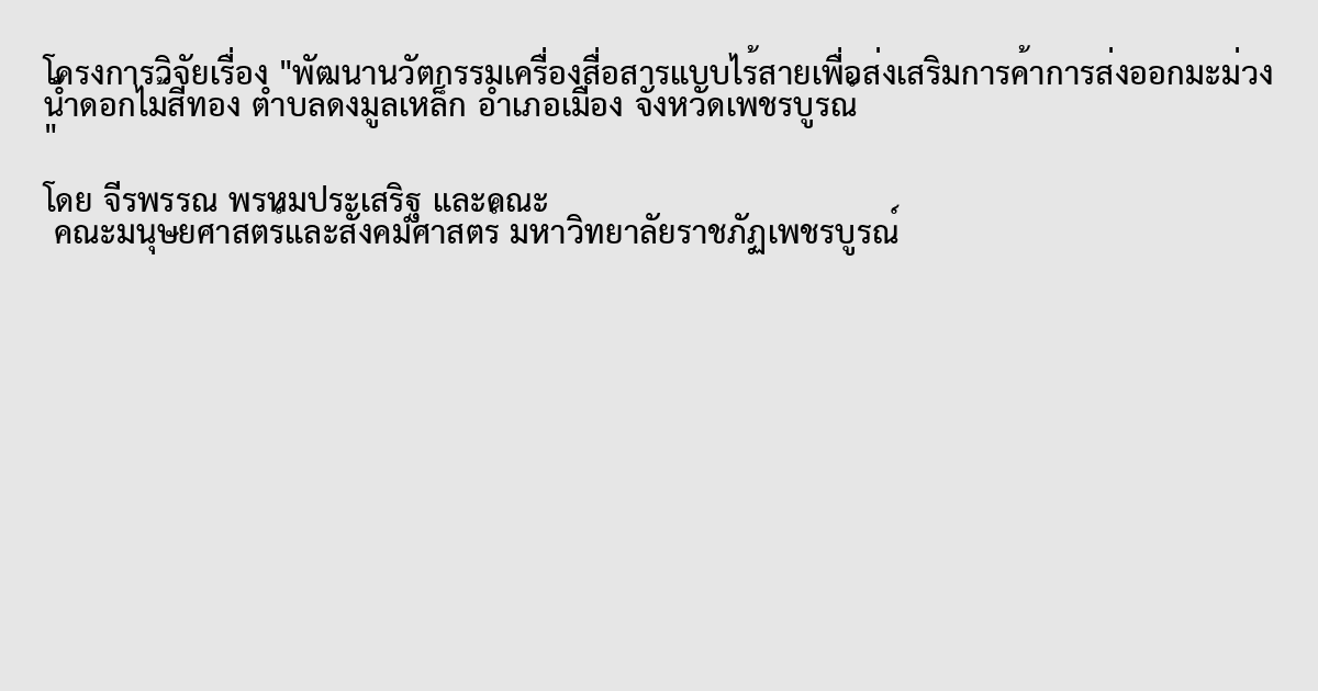 พัฒนานวัตกรรมเครื่องสื่อสารแบบไร้สายเพื่อส่งเสริมการค้าการส่งออกมะม่วงน้ำดอกไม้สีทอง ตำบลดงมูลเหล็ก อำเภอเมือง จังหวัดเพชรบูรณ์