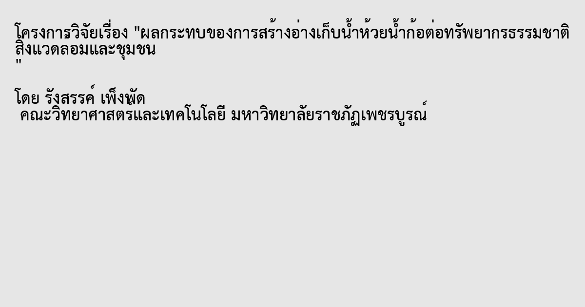 ผลกระทบของการสร้างอ่างเก็บน้ำห้วยน้ำก้อต่อทรัพยากรธรรมชาติ สิ่งแวดล้อมและชุมชน