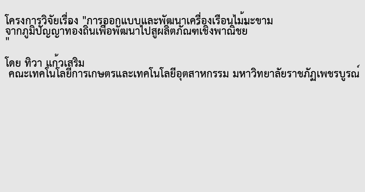 การออกแบบและพัฒนาเครื่องเรือนไม้มะขาม จากภูมิปัญญาท้องถิ่นเพื่อพัฒนาไปสู่ผลิตภัณฑ์เชิงพาณิชย์