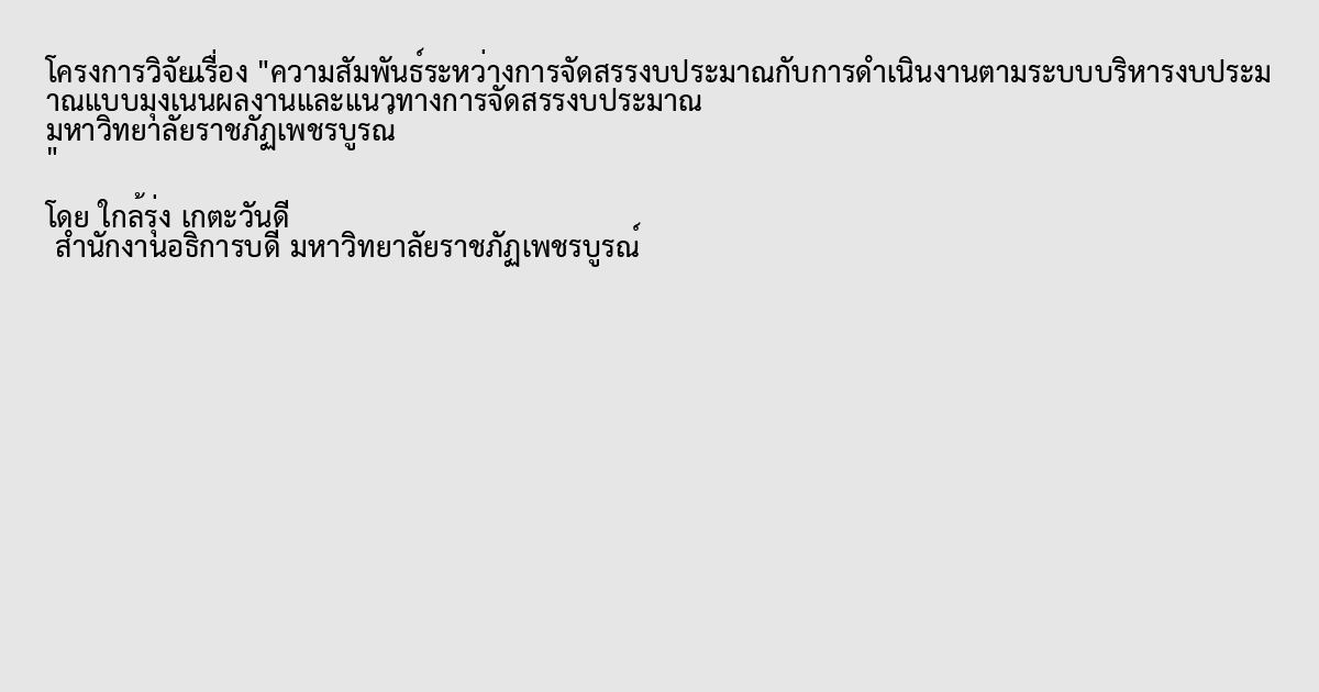 ความสัมพันธ์ระหว่างการจัดสรรงบประมาณกับการดำเนินงานตามระบบบริหารงบประมาณแบบมุ่งเน้นผลงานและแนวทางการจัดสรรงบประมาณ มหาวิทยาลัยราชภัฏเพชรบูรณ์