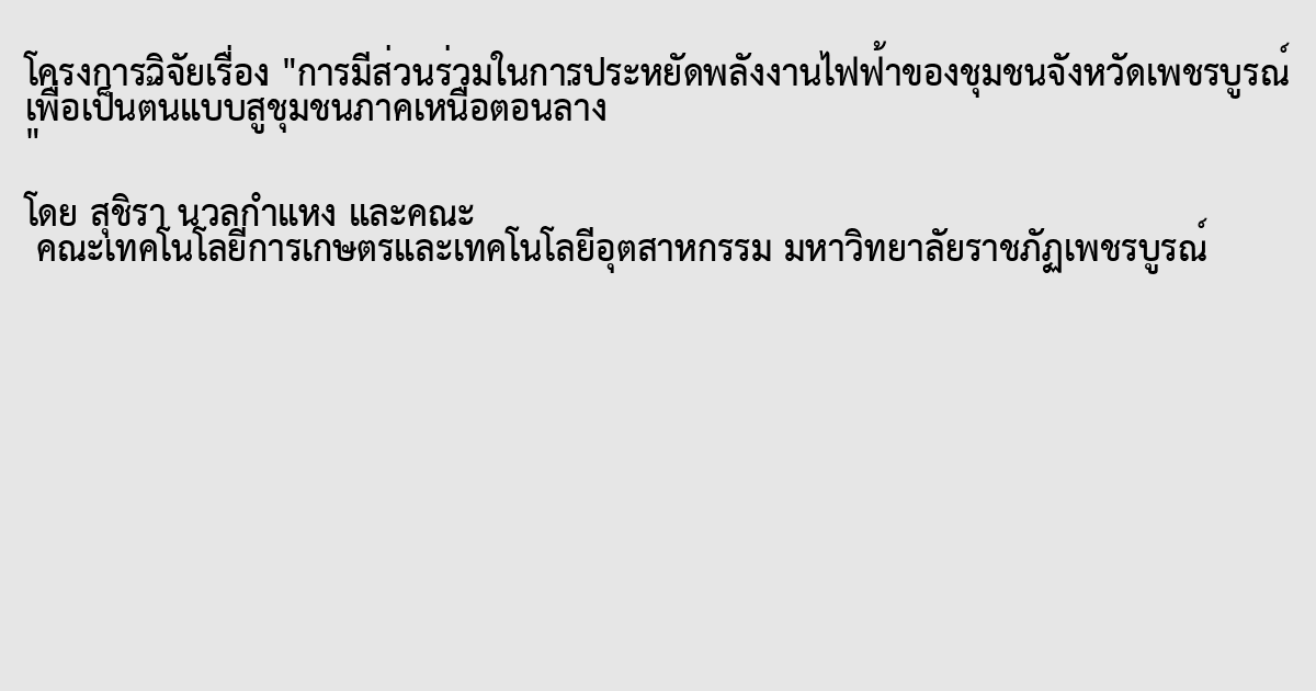 การมีส่วนร่วมในการประหยัดพลังงานไฟฟ้าของชุมชนจังหวัดเพชรบูรณ์ เพื่อเป็นต้นแบบสู่ชุมชนภาคเหนือตอนล่าง