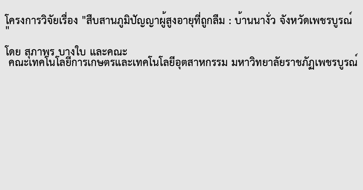 สืบสานภูมิปัญญาผู้สูงอายุที่ถูกลืม : บ้านนางั่ว จังหวัดเพชรบูรณ์