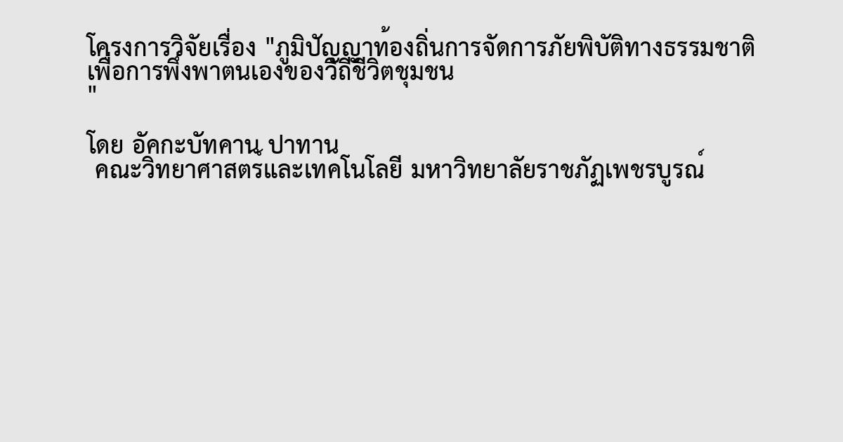 ภูมิปัญญาท้องถิ่นการจัดการภัยพิบัติทางธรรมชาติ เพื่อการพึ่งพาตนเองของวิถีชีวิตชุมชน