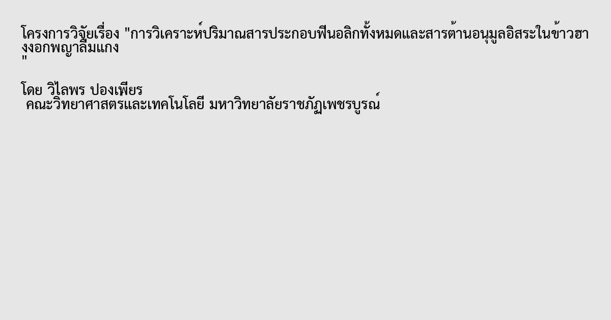การวิเคราะห์ปริมาณสารประกอบฟีนอลิกทั้งหมดและสารต้านอนุมูลอิสระในข้าวฮางงอกพญาลืมแกง