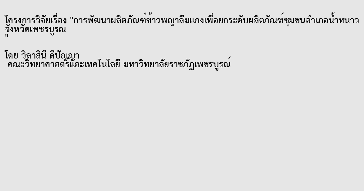คำสำคัญ : ข้าวพญาลืมแกง พัฒนาผลิตภัณฑ์