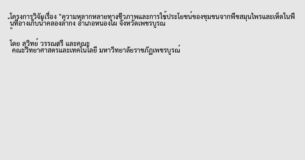 ความหลากหลายทางชีวภาพและการใช้ประโยชน์ของชุมชนจากพืชสมุนไพรและเห็ดในพื้นที่อ่างเก็บน้ำคลองลำกง อำเภอหนองไผ่ จังหวัดเพชรบูรณ์