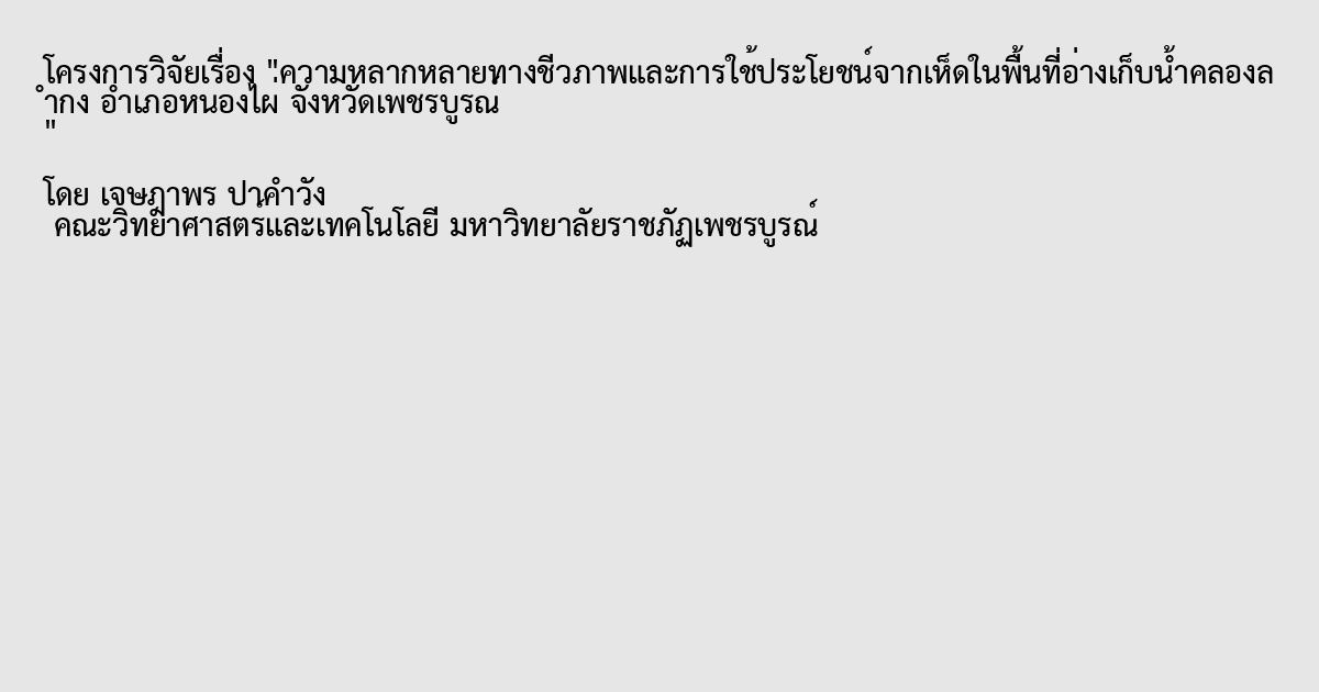 ความหลากหลายทางชีวภาพและการใช้ประโยชน์จากเห็ดในพื้นที่อ่างเก็บน้ำคลองลำกง อำเภอหนองไผ่ จังหวัดเพชรบูรณ์
