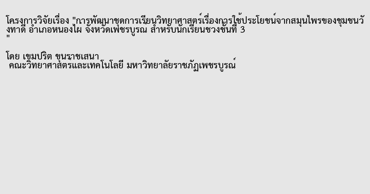 การพัฒนาชุดการเรียนวิทยาศาสตร์เรื่องการใช้ประโยชน์จากสมุนไพรของชุมชนวังท่าดี อำเภอหนองไผ่ จังหวัดเพชรบูรณ์ สำหรับนักเรียนช่วงชั้นที่ 3