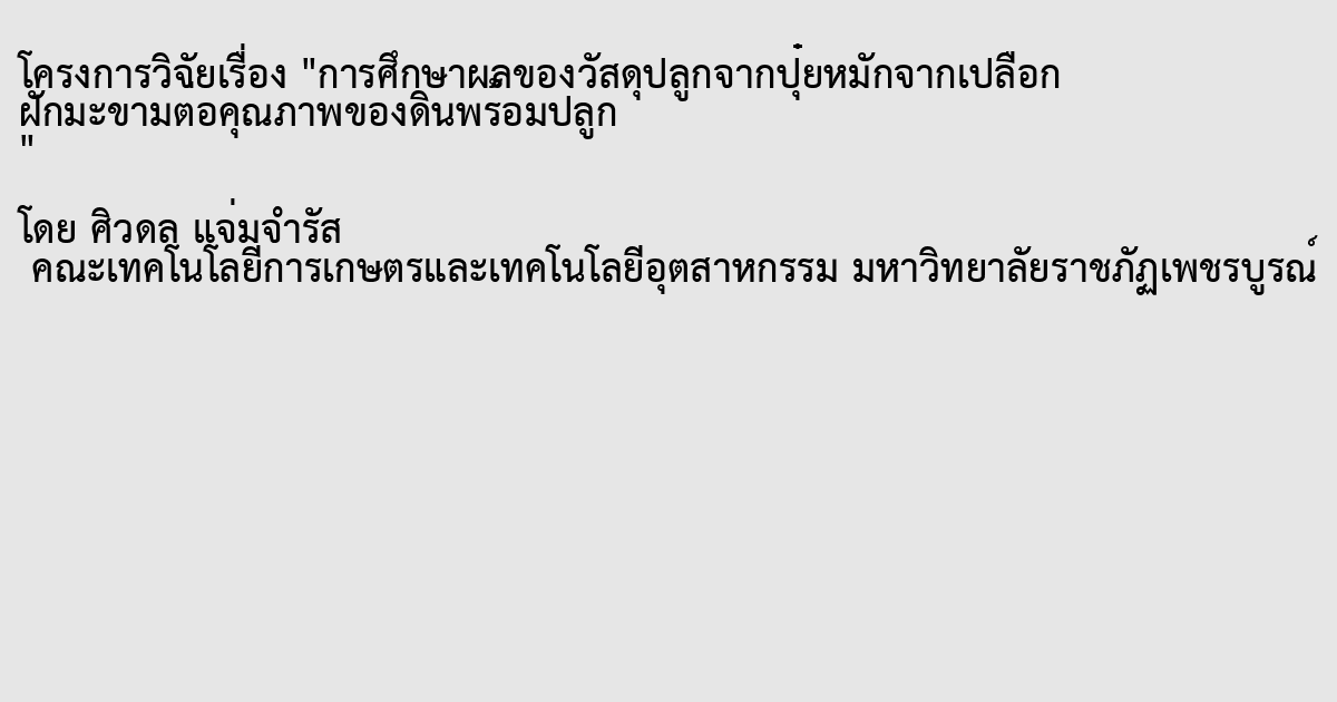 การศึกษาผลของวัสดุปลูกจากปุ๋ยหมักจากเปลือก ฝักมะขามต่อคุณภาพของดินพร้อมปลูก