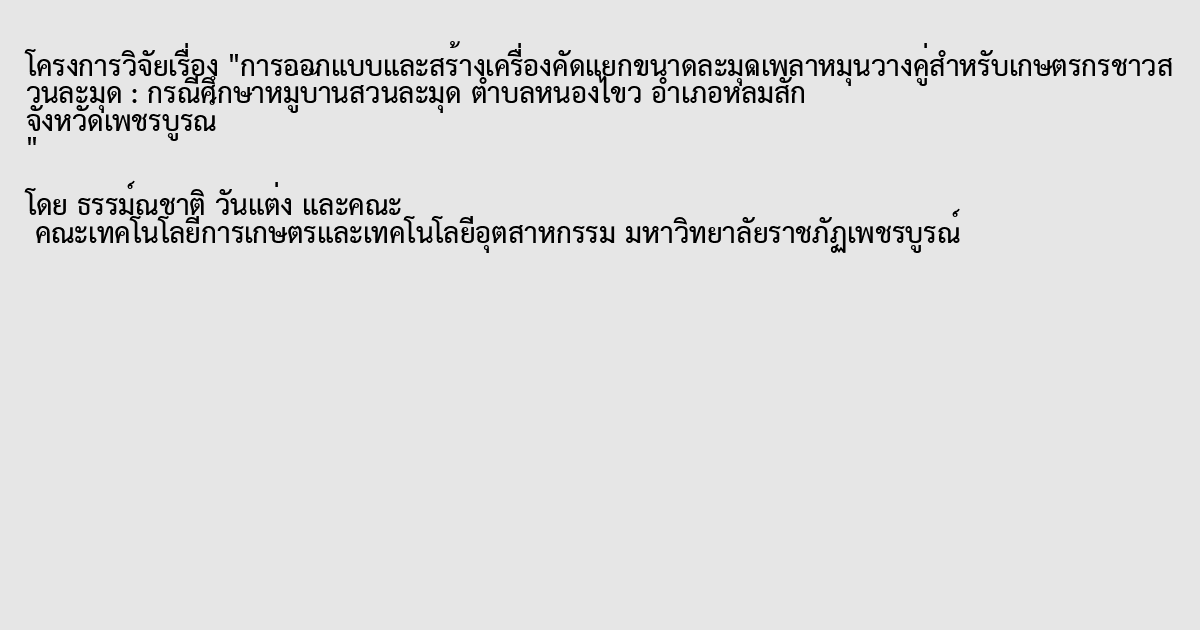 Design and Fabrication of Sapodilla Sorting Machine with Two Roll Spindle Model for Sapodilla Orchards : A Case Study of Suan Lamood Village, Tambon Nong Khwai, Lom sak District, Phetchabun Province.