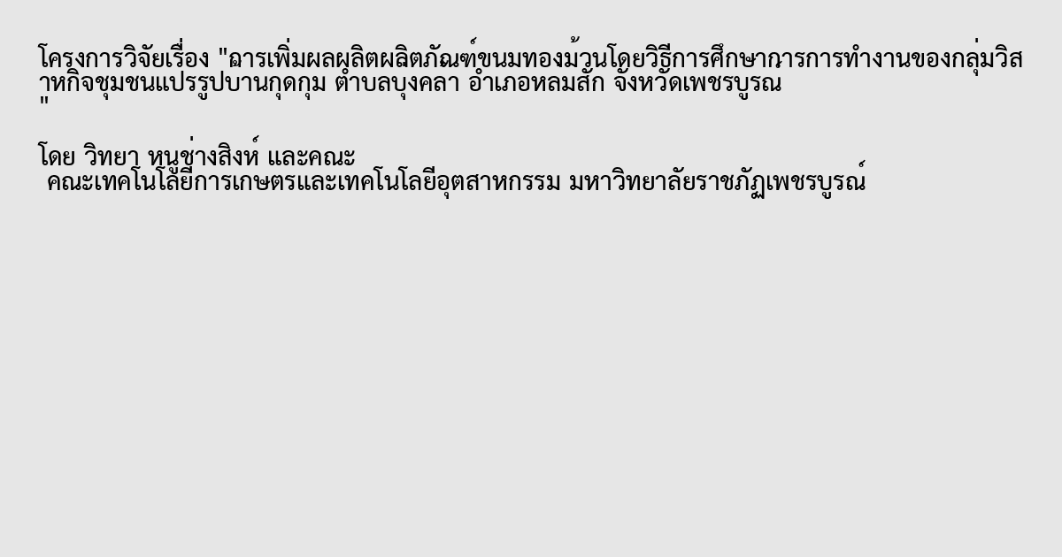 การเพิ่มผลผลิตผลิตภัณฑ์ขนมทองม้วนโดยวิธีการศึกษาการการทำงานของกลุ่มวิสาหกิจชุมชนแปรรูปบ้านกุดกุ่ม ตำบลบุ่งคล้า อำเภอหล่มสัก จังหวัดเพชรบูรณ์