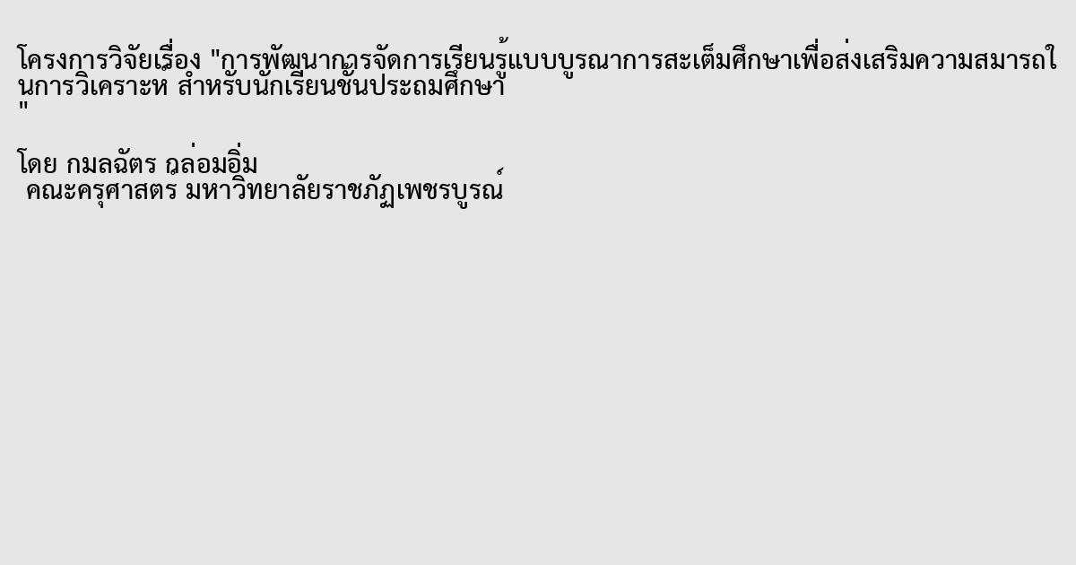 คำสำคัญ : การจัดการเรียนรู้แบบบูรณาการสะเต็มศึกษา,การจัดการเรียนรู้แบบปกติ