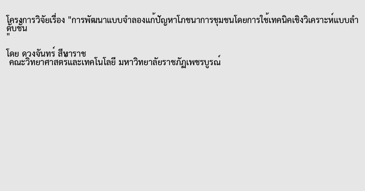 การพัฒนาแบบจำลองแก้ปัญหาโภชนาการชุมชนโดยการใช้เทคนิคเชิงวิเคราะห์แบบลำดับชั้น