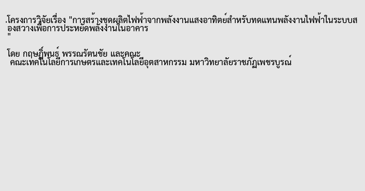 การสร้างชุดผลิตไฟฟ้าจากพลังงานแสงอาทิตย์สำหรับทดแทนพลังงานไฟฟ้าในระบบส่องสว่างเพื่อการประหยัดพลังงานในอาคาร