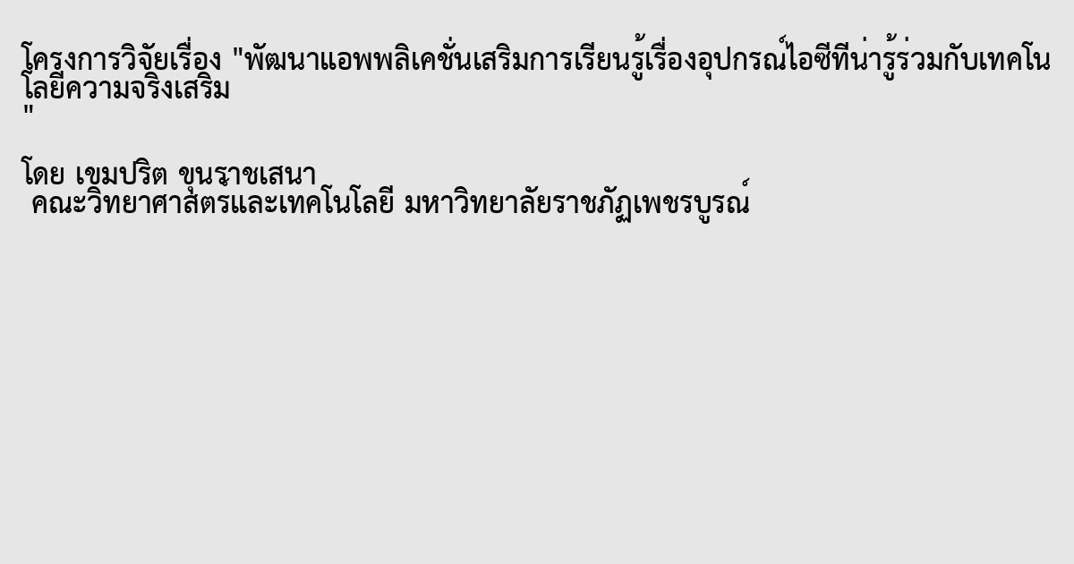พัฒนาแอพพลิเคชั่นเสริมการเรียนรู้เรื่องอุปกรณ์ไอซีทีน่ารู้ร่วมกับเทคโนโลยีความจริงเสริม