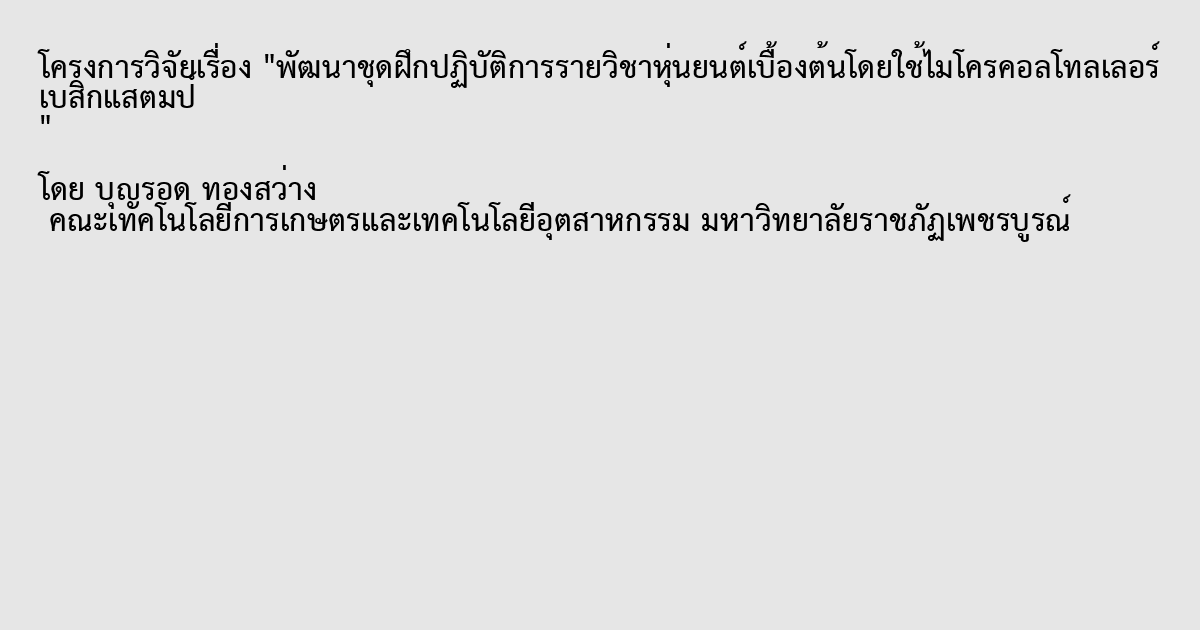 พัฒนาชุดฝึกปฏิบัติการรายวิชาหุ่นยนต์เบื้องต้นโดยใช้ไมโครคอลโทลเลอร์ เบสิกแสตมป์