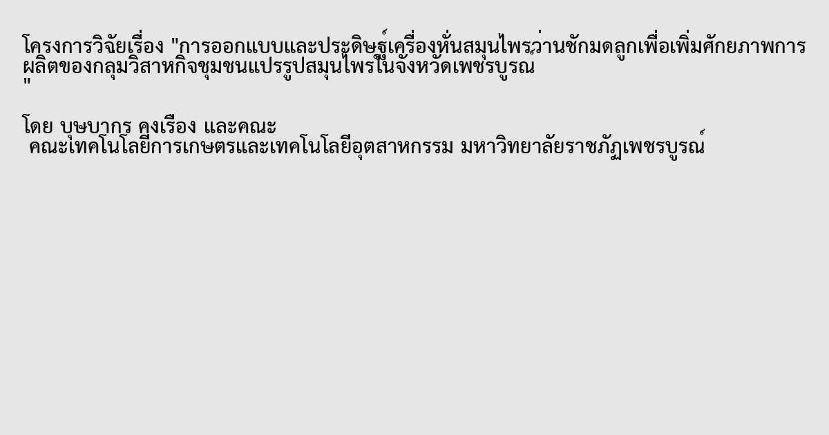 การออกแบบและประดิษฐ์เครื่องหั่นสมุนไพรว่านชักมดลูกเพื่อเพิ่มศักยภาพการผลิตของกลุ่มวิสาหกิจชุมชนแปรรูปสมุนไพรในจังหวัดเพชรบูรณ์