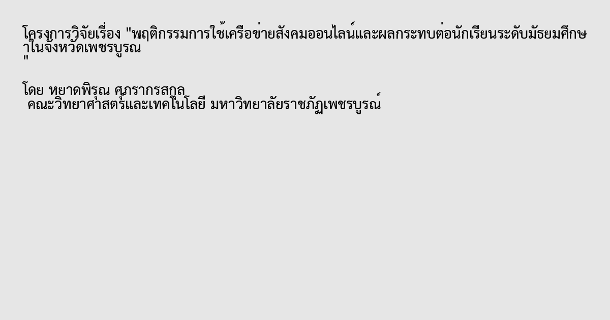 พฤติกรรมการใช้เครือข่ายสังคมออนไลน์และผลกระทบต่อนักเรียนระดับมัธยมศึกษาในจังหวัดเพชรบูรณ์
