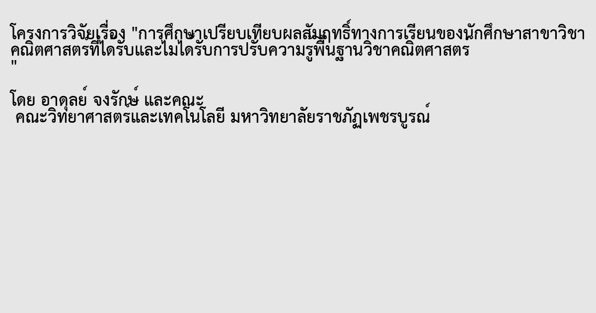 การศึกษาเปรียบเทียบผลสัมฤทธิ์ทางการเรียนของนักศึกษาสาขาวิชา คณิตศาสตร์ที่ได้รับและไม่ได้รับการปรับความรู้พื้นฐานวิชาคณิตศาสตร์