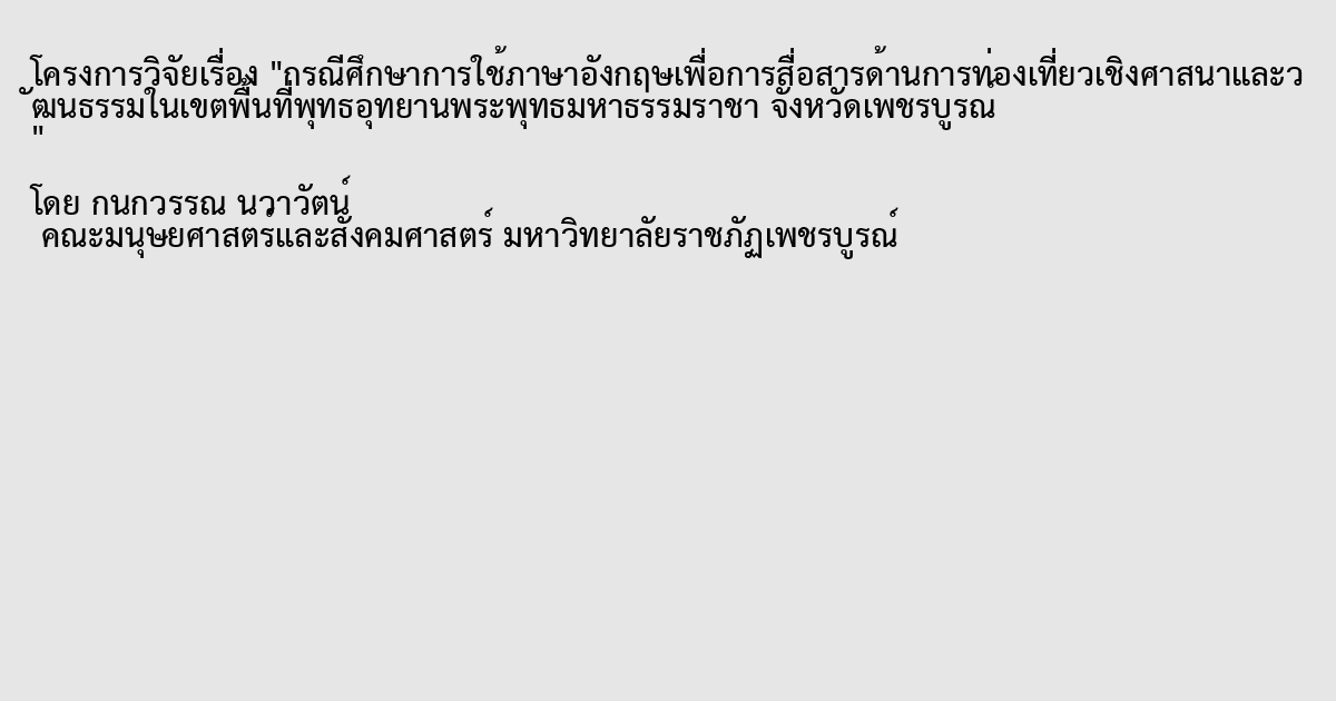 กรณีศึกษาการใช้ภาษาอังกฤษเพื่อการสื่อสารด้านการท่องเที่ยวเชิงศาสนาและวัฒนธรรมในเขตพื้นที่พุทธอุทยานพระพุทธมหาธรรมราชา จังหวัดเพชรบูรณ์