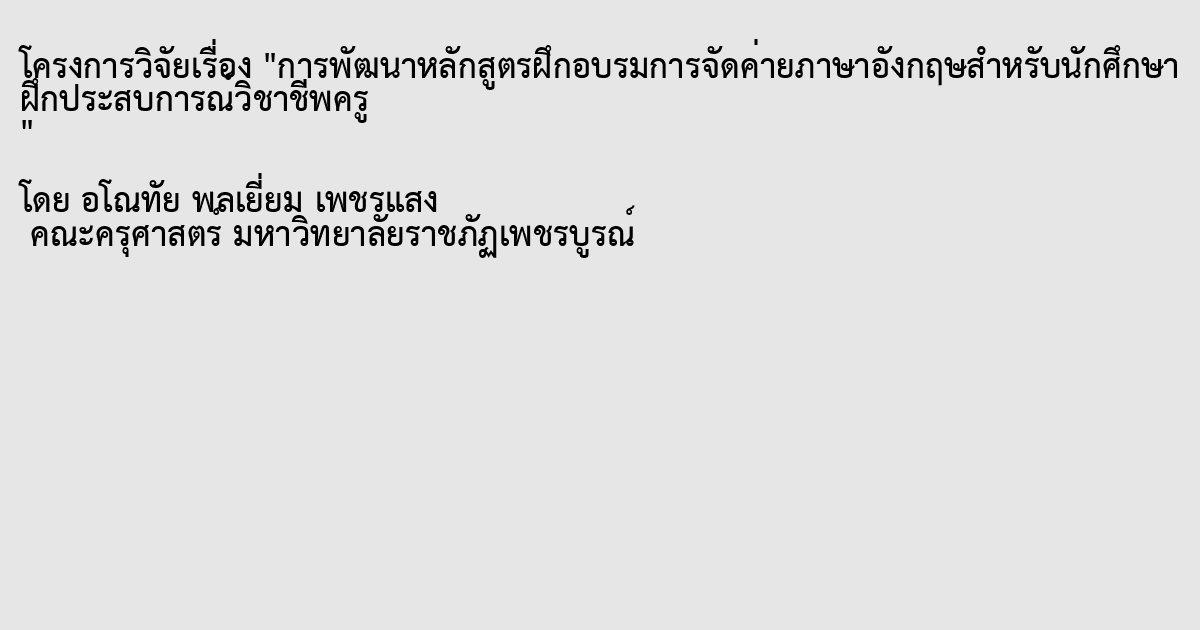 การพัฒนาหลักสูตรฝึกอบรมการจัดค่ายภาษาอังกฤษสำหรับนักศึกษา ฝึกประสบการณ์วิชาชีพครู
