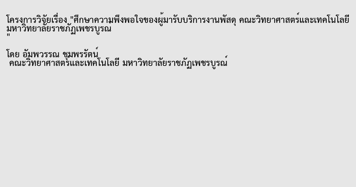 การวิจัย เรื่อง ศึกษาความพึงพอใจของผู้มารับบริการงานพัสดุ คณะวิทยาศาสตร์และเทคโนโลยี มหาวิทยาลัยราชภัฏเพชรบูรณ์ โดยมีวัตถุประสงค์จุดประสงค์