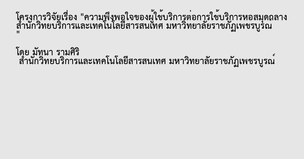 ความพึงพอใจของผู้ใช้บริการต่อการใช้บริการหอสมุดกลาง สำนักวิทยบริการและเทคโนโลยีสารสนเทศ มหาวิทยาลัยราชภัฏเพชรบูรณ์
