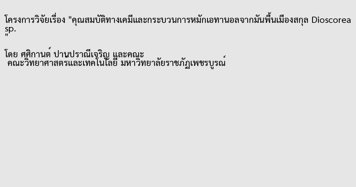 คำสำคัญ : มันพื้นเมืองสกุล Dioscorea sp., กระบวนการหมักเอทานอล, กากมัน