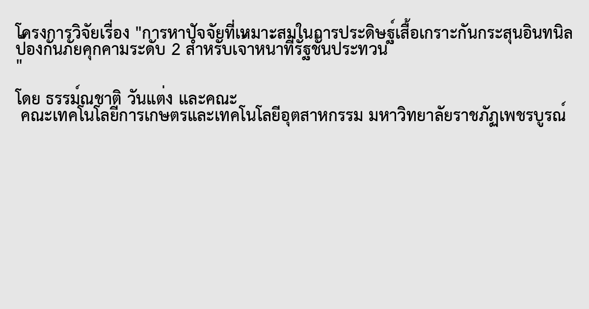 การหาปัจจัยที่เหมาะสมในการประดิษฐ์เสื้อเกราะกันกระสุนอินทนิล ป้องกันภัยคุกคามระดับ 2 สำหรับเจ้าหน้าที่รัฐชั้นประทวน