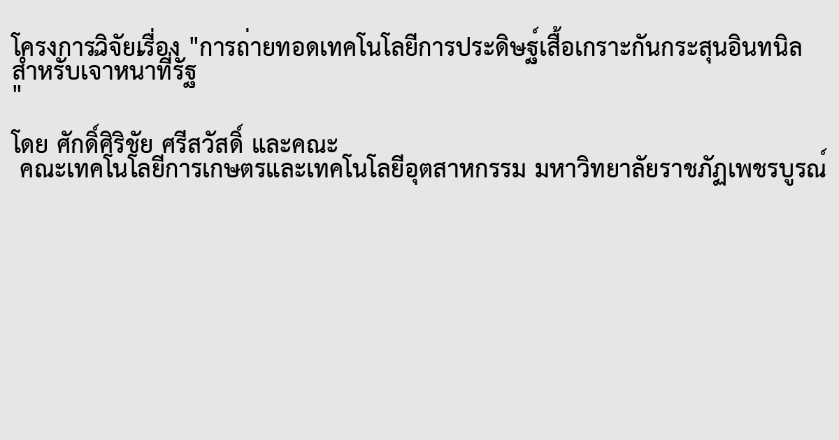 การถ่ายทอดเทคโนโลยีการประดิษฐ์เสื้อเกราะกันกระสุนอินทนิล สำหรับเจ้าหน้าที่รัฐ