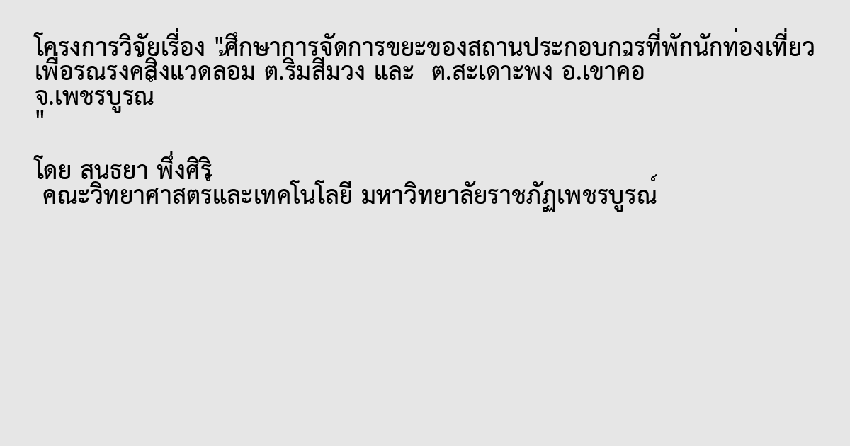 ศึกษาการจัดการขยะของสถานประกอบการที่พักนักท่องเที่ยว เพื่อรณรงค์สิ่งแวดล้อม ต.ริมสีม่วง และ ต.สะเดาะพง อ.เขาค้อ จ.เพชรบูรณ์