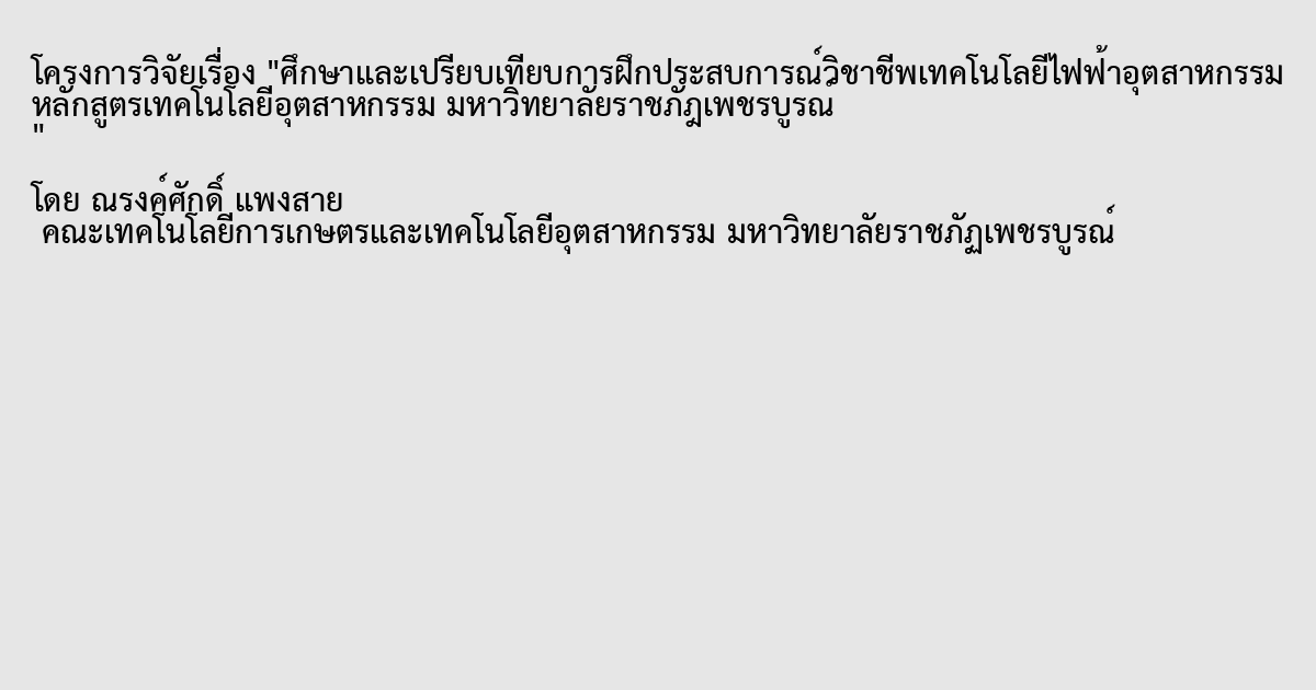ศึกษาและเปรียบเทียบการฝึกประสบการณ์วิชาชีพเทคโนโลยีไฟฟ้าอุตสาหกรรม หลักสูตรเทคโนโลยีอุตสาหกรรม มหาวิทยาลัยราชภัฎเพชรบูรณ์