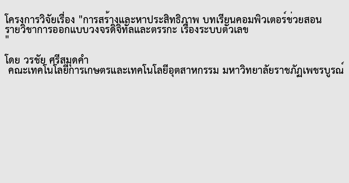 การสร้างและหาประสิทธิภาพ บทเรียนคอมพิวเตอร์ช่วยสอน รายวิชาการออกแบบวงจรดิจิทัลและตรรกะ เรื่องระบบตัวเลข