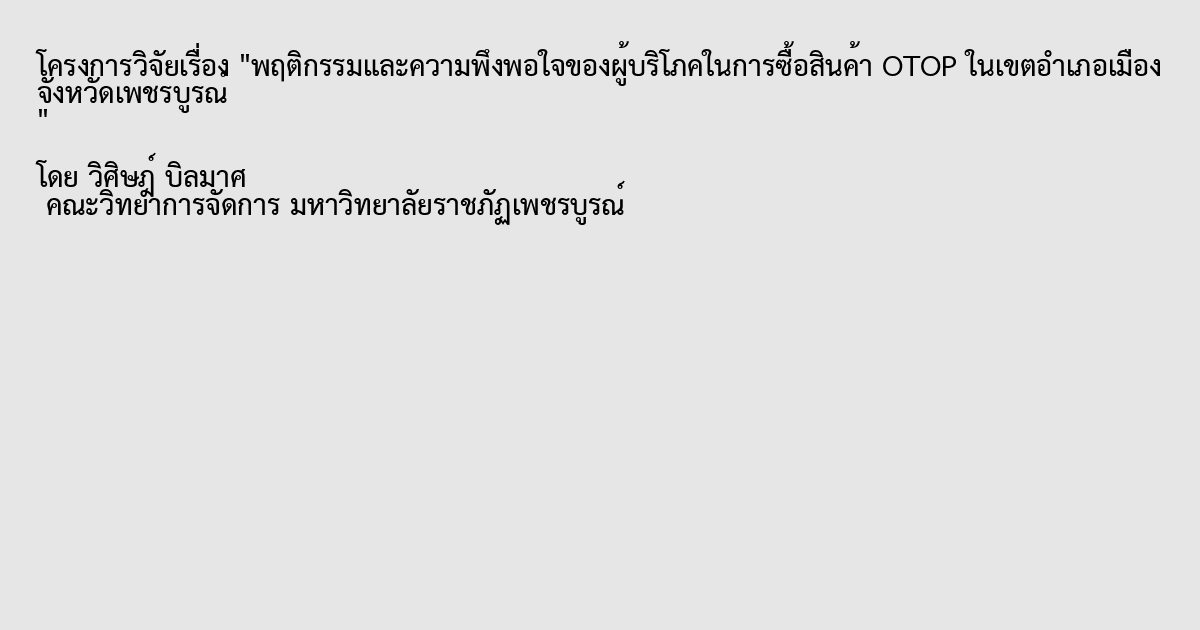 พฤติกรรมและความพึงพอใจของผู้บริโภคในการซื้อสินค้า OTOP ในเขตอำเภอเมือง จังหวัดเพชรบูรณ์