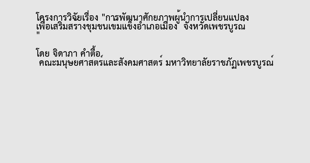 การพัฒนาศักยภาพผู้นำการเปลี่ยนแปลง เพื่อเสริมสร้างชุมชนเข้มแข็งอำเภอเมือง จังหวัดเพชรบูรณ์