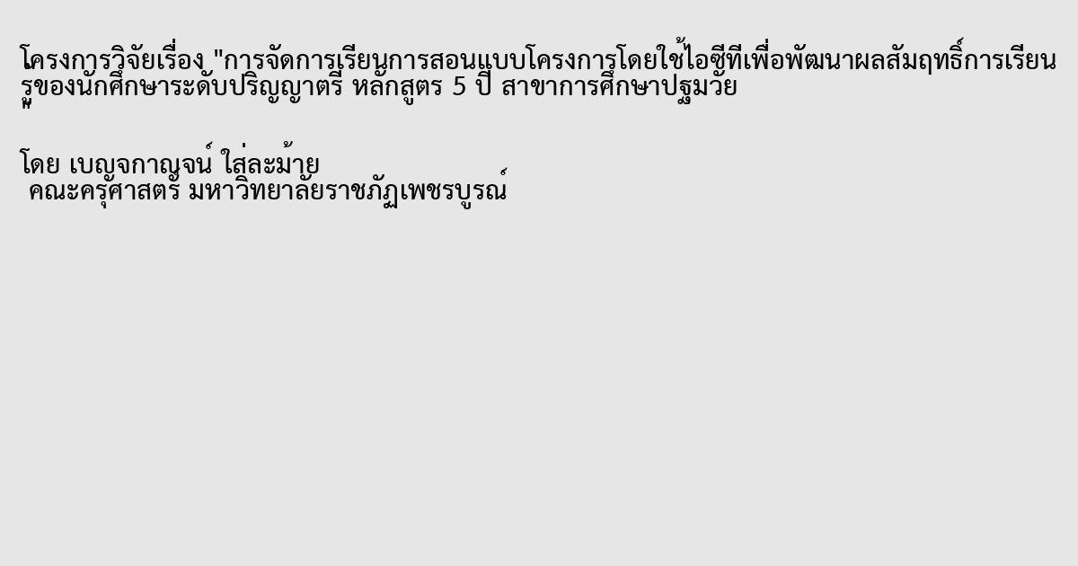 การจัดการเรียนการสอนแบบโครงการโดยใช้ไอซีทีเพื่อพัฒนาผลสัมฤทธิ์การเรียนรู้ของนักศึกษาระดับปริญญาตรี หลักสูตร 5 ปี สาขาการศึกษาปฐมวัย