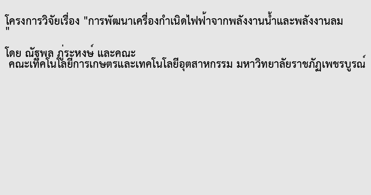 การพัฒนาเครื่องกำเนิดไฟฟ้าจากพลังงานน้ำและพลังงานลม