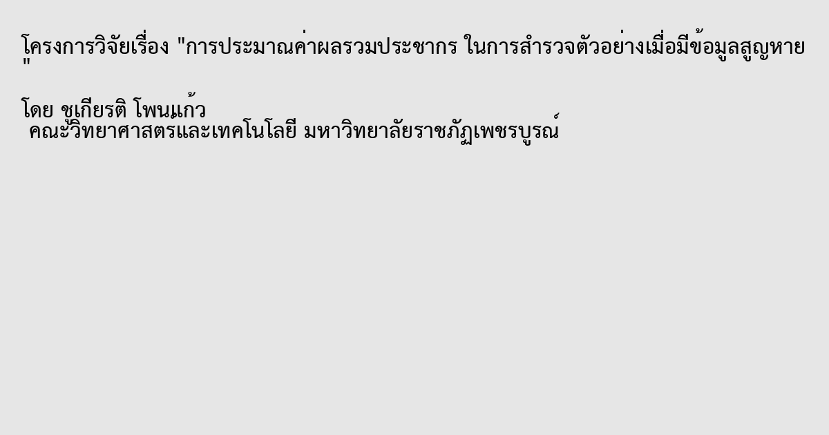 การประมาณค่าผลรวมประชากร ในการสำรวจตัวอย่างเมื่อมีข้อมูลสูญหาย