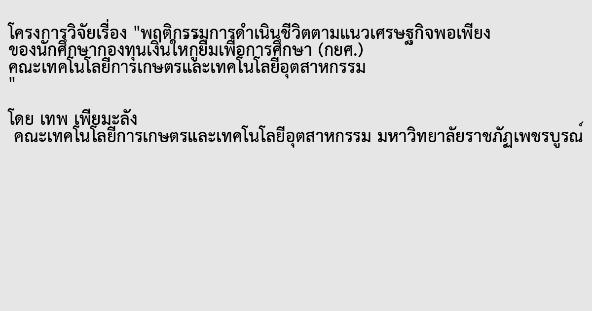 พฤติกรรมการดำเนินชีวิตตามแนวเศรษฐกิจพอเพียง ของนักศึกษากองทุนเงินให้กู้ยืมเพื่อการศึกษา (กยศ.) คณะเทคโนโลยีการเกษตรและเทคโนโลยีอุตสาหกรรม