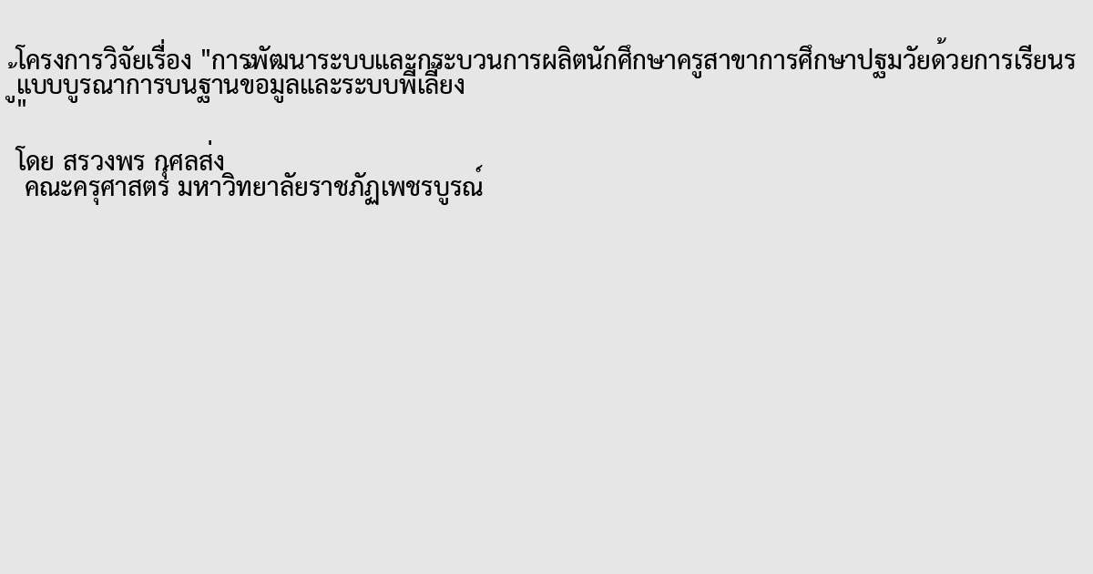 การพัฒนาระบบและกระบวนการผลิตนักศึกษาครูสาขาการศึกษาปฐมวัยด้วยการเรียนรู้แบบบูรณาการบนฐานข้อมูลและระบบพี่เลี้ยง