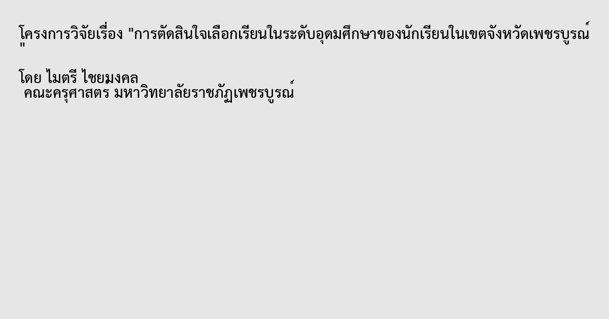 This descriptive research was designed to study decision making processes of student in the Phetchabun metropolitan area about attending university.
