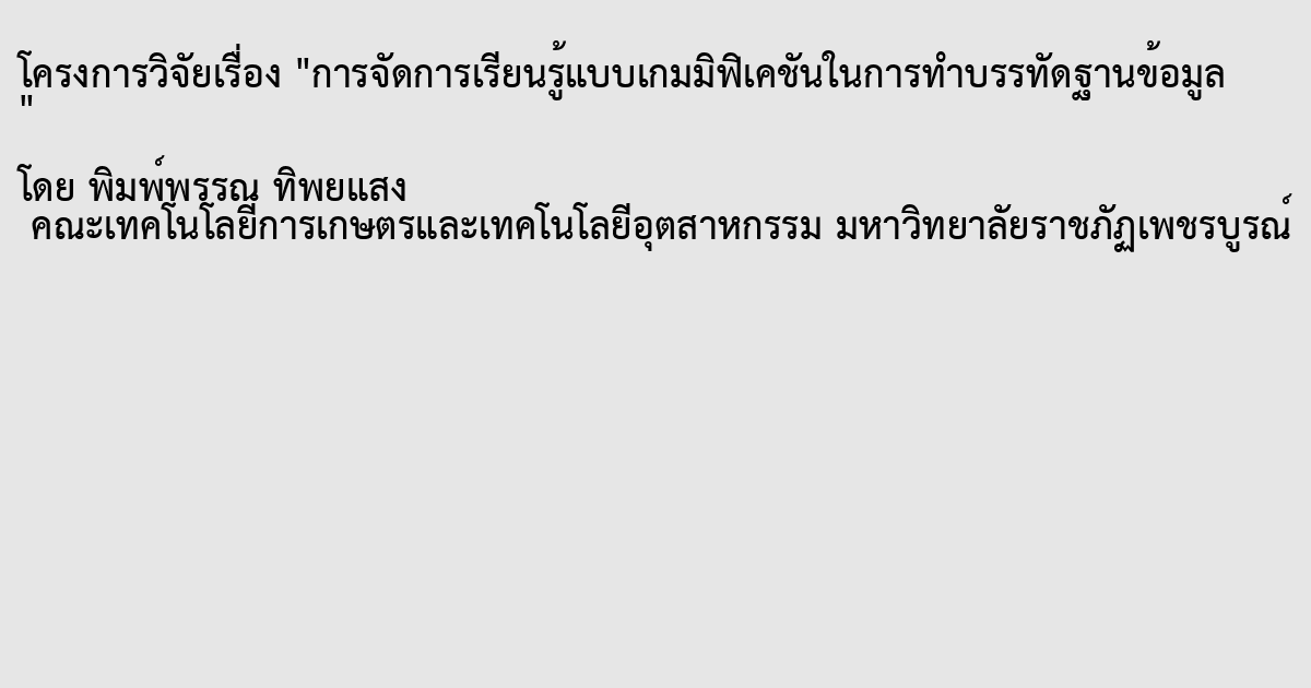 การจัดการเรียนรู้แบบเกมมิฟิเคชันในการทำบรรทัดฐานข้อมูล