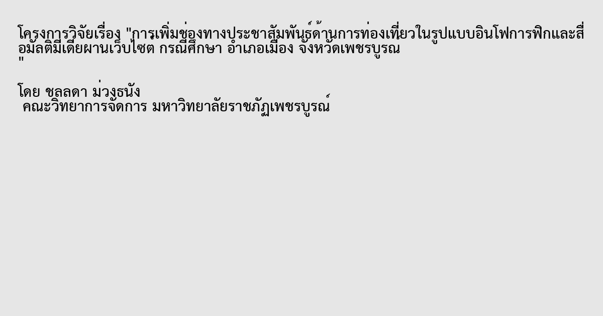 การเพิ่มช่องทางประชาสัมพันธ์ด้านการท่องเที่ยวในรูปแบบอินโฟการฟิกและสื่อมัลติมีเดียผ่านเว็บไซต์ กรณีศึกษา อำเภอเมือง จังหวัดเพชรบูรณ์