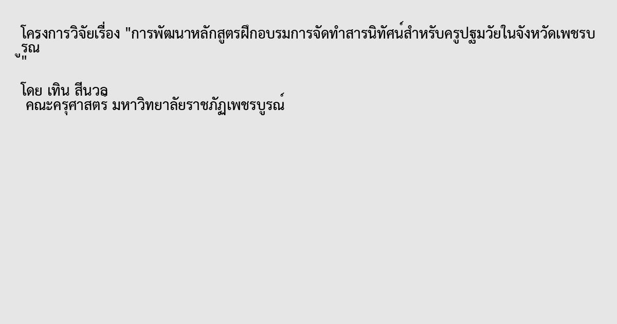 การพัฒนาหลักสูตรฝึกอบรมการจัดทำสารนิทัศน์สำหรับครูปฐมวัยในจังหวัดเพชรบูรณ์