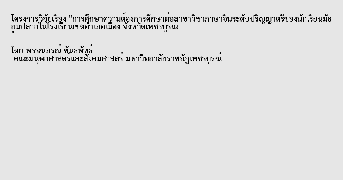 ความต้องการศึกษาต่อ,สาขาวิชาภาษาจีน,นักเรียนชั้นมัธยมปลาย,จังหวัดเพชรบูรณ์,Desire to Pursue Higher Education,Chinese Program,High School Students,Phetchabun Province