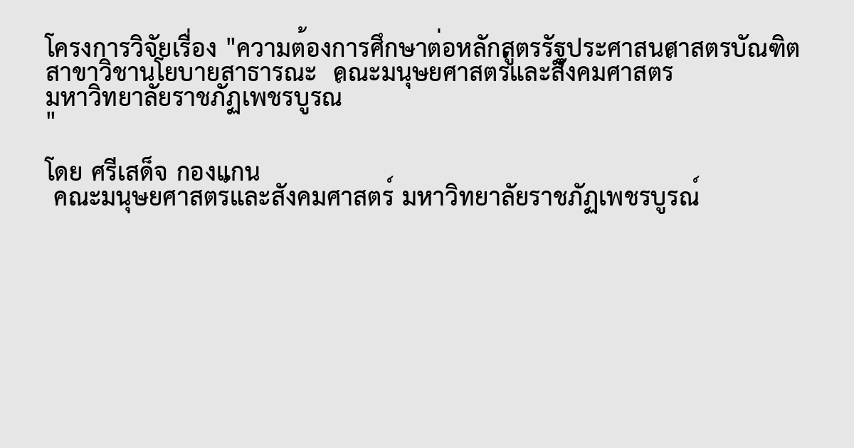 ความต้องการศึกษาต่อหลักสูตรรัฐประศาสนศาสตรบัณฑิต สาขาวิชานโยบายสาธารณะ คณะมนุษยศาสตร์และสังคมศาสตร์ มหาวิทยาลัยราชภัฏเพชรบูรณ์