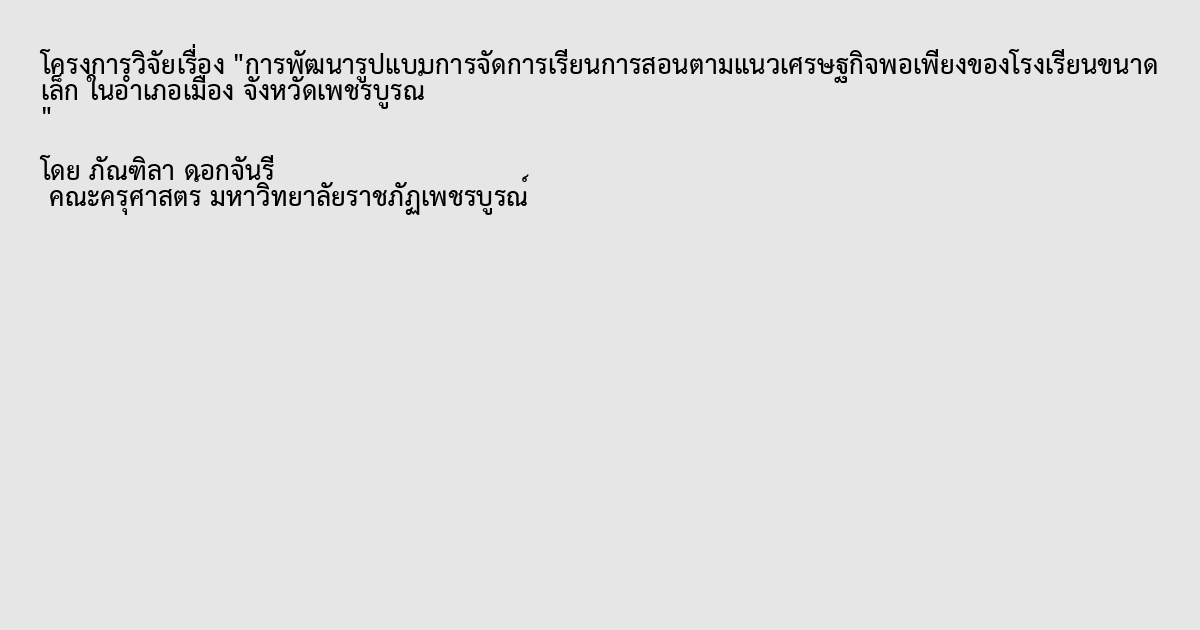 การพัฒนารูปแบบการจัดการเรียนการสอนตามแนวเศรษฐกิจพอเพียงของโรงเรียนขนาดเล็ก ในอำเภอเมือง จังหวัดเพชรบูรณ์
